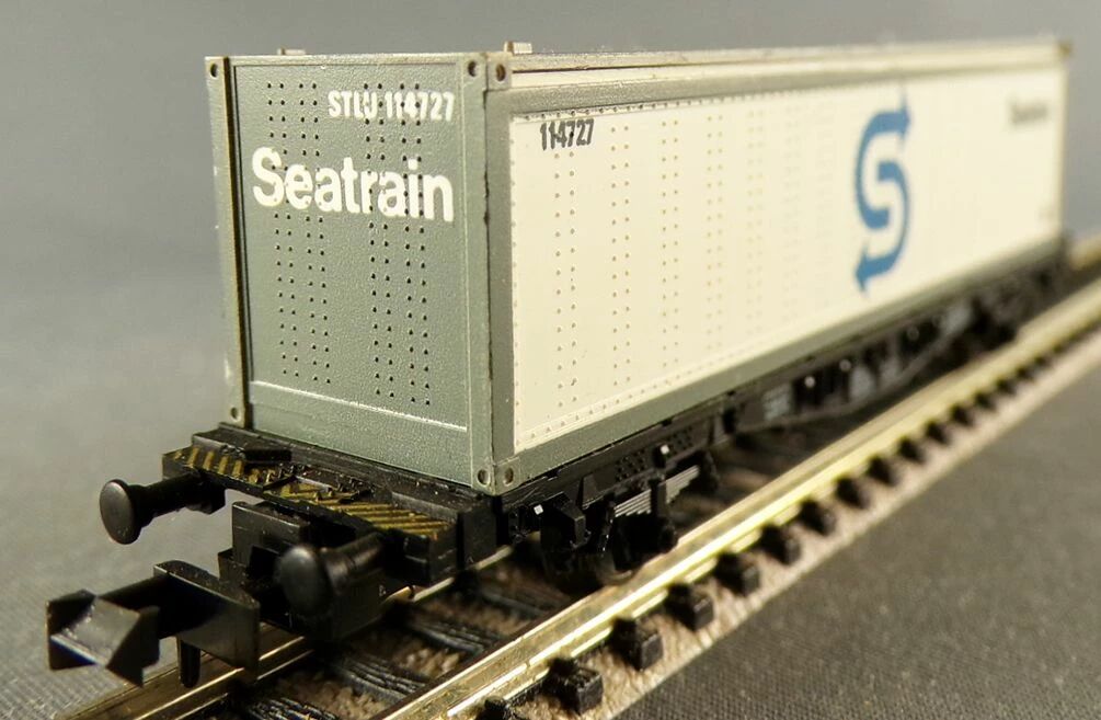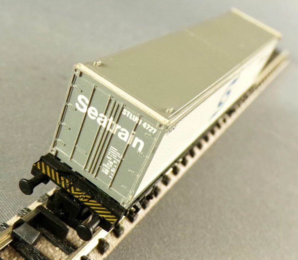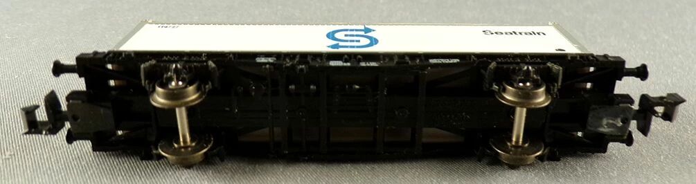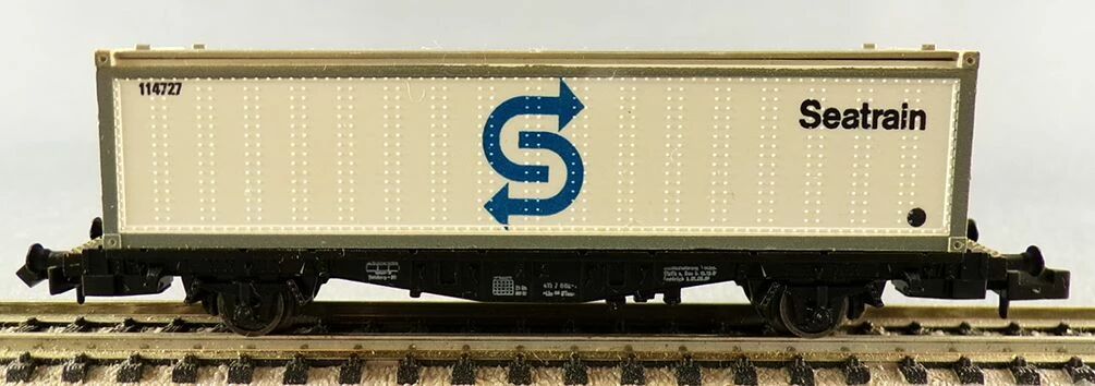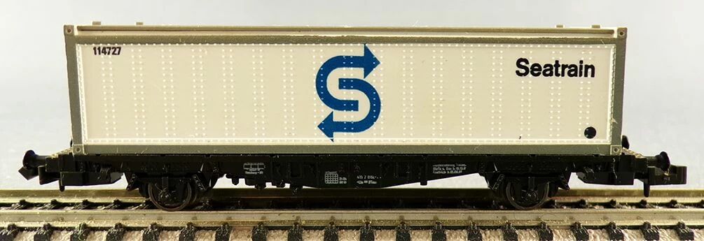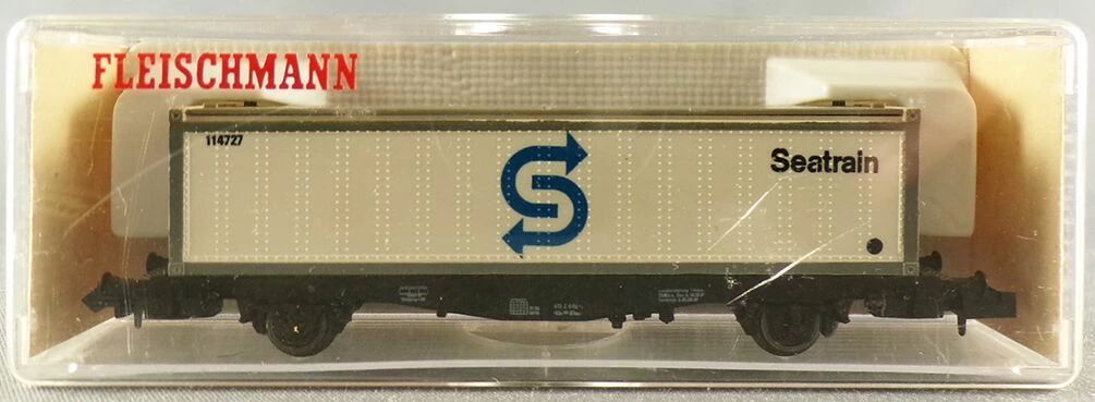 Fleischmann 8240 N Scale Db White Seatrain 40 feet container wagon 2 axles Lbs (BTmms) type, registration 21 80 411 7 882-1. Length 90 mm. Mint in box, unused, metal wheels, complete, buffers ok, close couplers, removable container, aera IV.