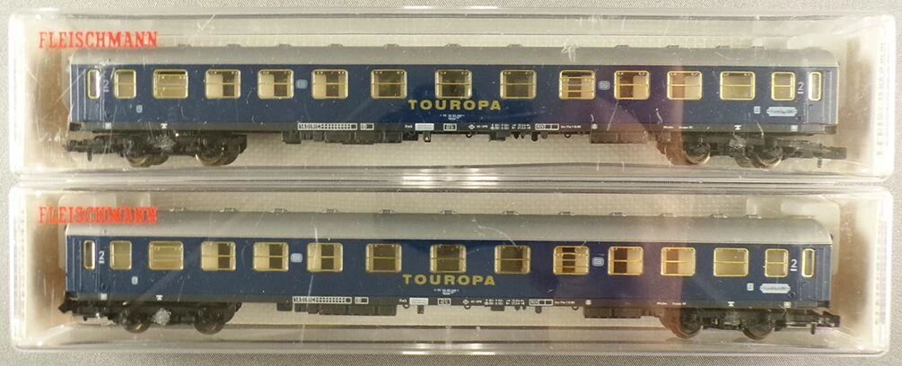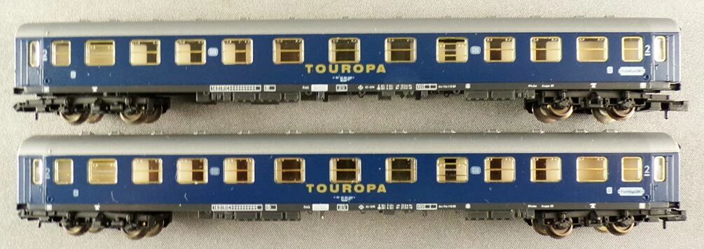 Fleischmann 8110 N Scale DB 2 x Sleeping car 2nd classe Touropa Bctüm type, registration 256 51 80 50-80 544-2, area IV.