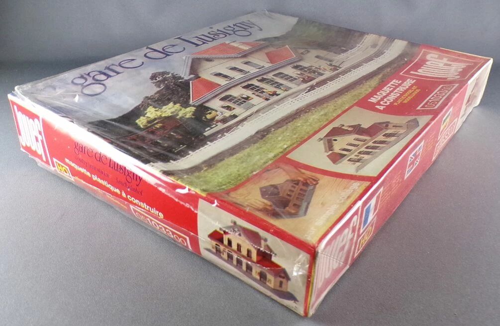 Jouef 1033 Ho Sncf Lusigny Station with plateform. Plastic model kit to assemble, can receive bulb for lightning. 241 x 131 x high 135 mm. Mint in sealed shrink wrapped box (shrink wrap partially cracked), parts on sprue, assembly instruction sheets, decoration board.