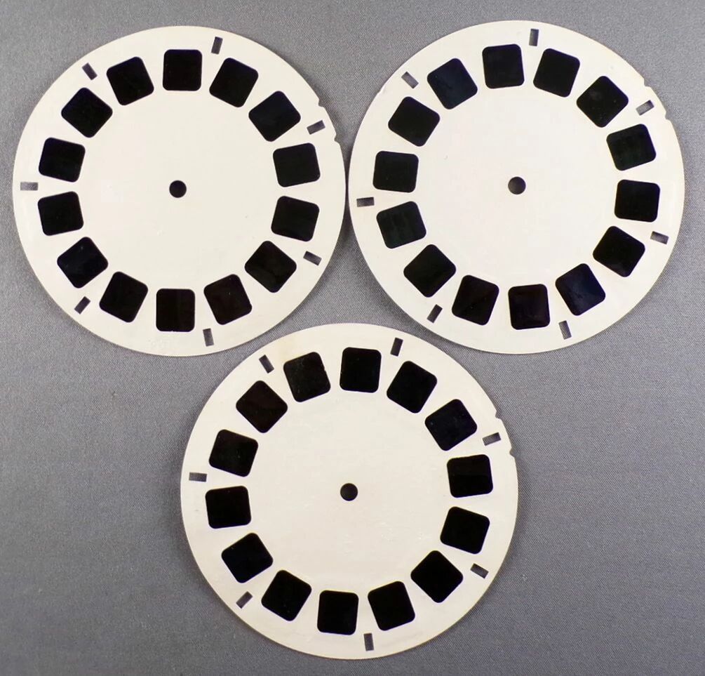 Type: View Disk set with a 16-pages booklet Material: Plastic + carton Size: Diameter 9 cm 3.54" Year: 1973 Origin: France Condition: Very good
