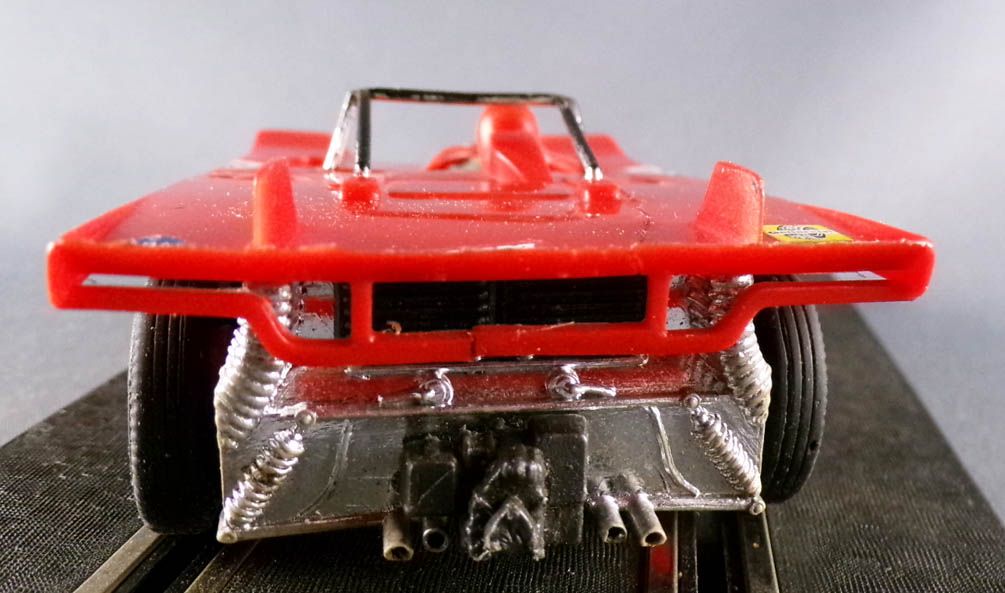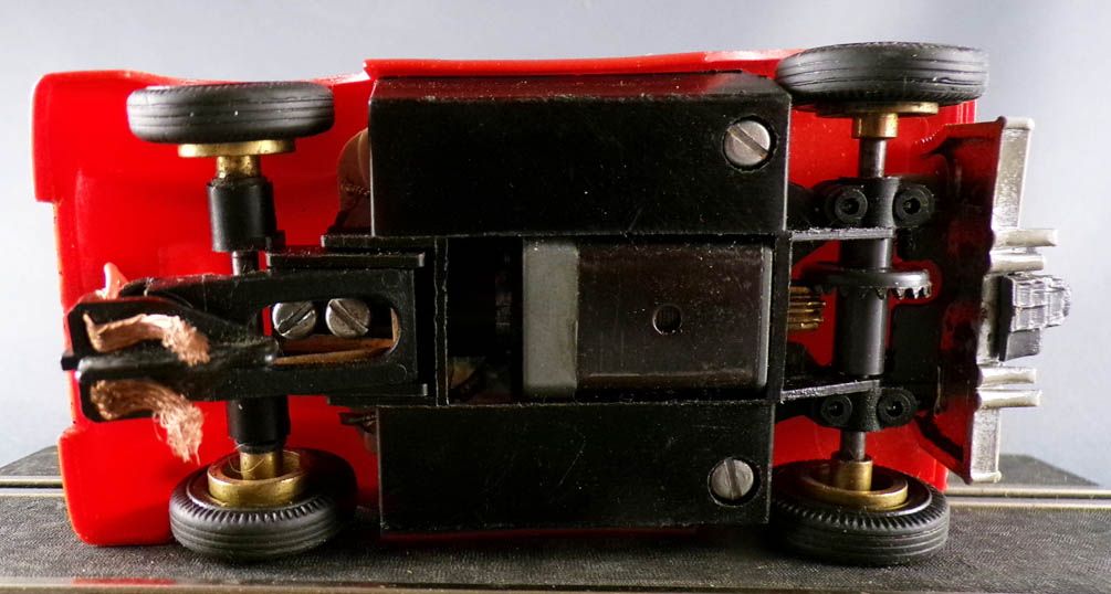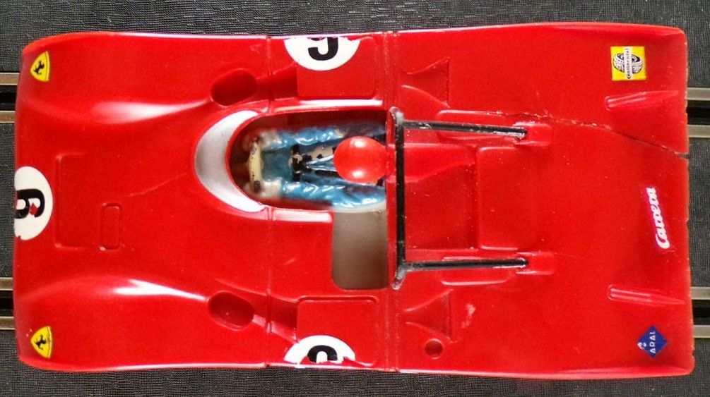 Condition : Used, tyres looks good, version without stripe and with silver windscreen & roll bar, open chassis, fitted with an Profi/evolution-type guide with two brushes, can be used on all tracks type, tested, run well, has not been driven for a long time, minor lubrication required for track use, front lower cross member under the opening is missing, bodywork cracked at the rear, without box, see pictures