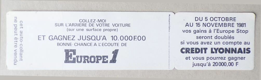 Home > Vintage Stickers > Vintage Stickers - Miscellaneous > Radio - Europe 1 Crédit Lyonnais - 11 x Vintage Stickers