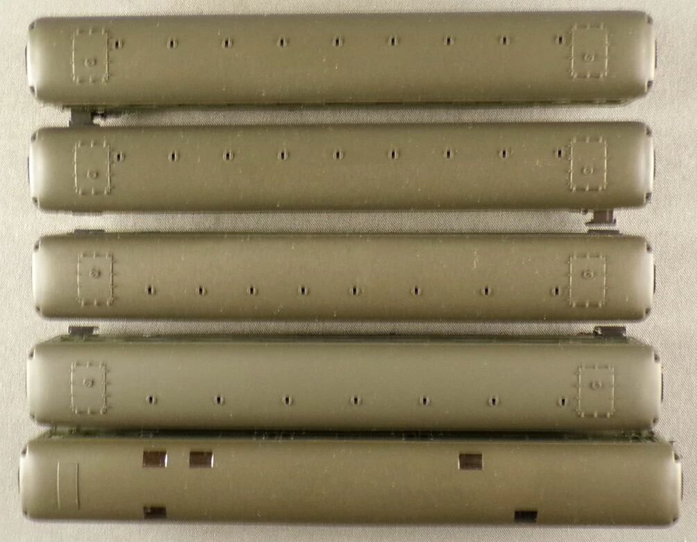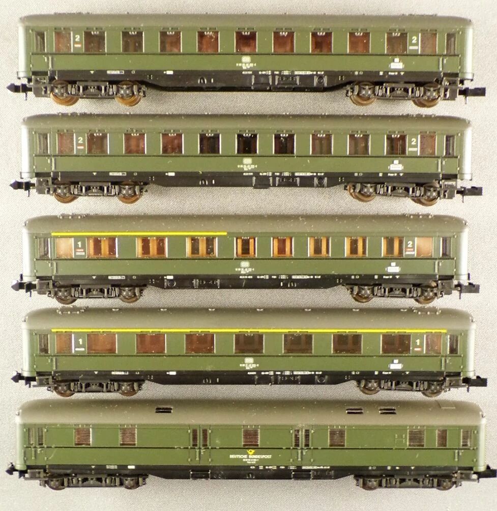 With detailed interior fittings, green livery grey roof. Length 132 mm. Mint in original box, burnished metal wheels, Roco couplers, complete, buffers ok, detail parts on sprue in bag, boxes in good condition.