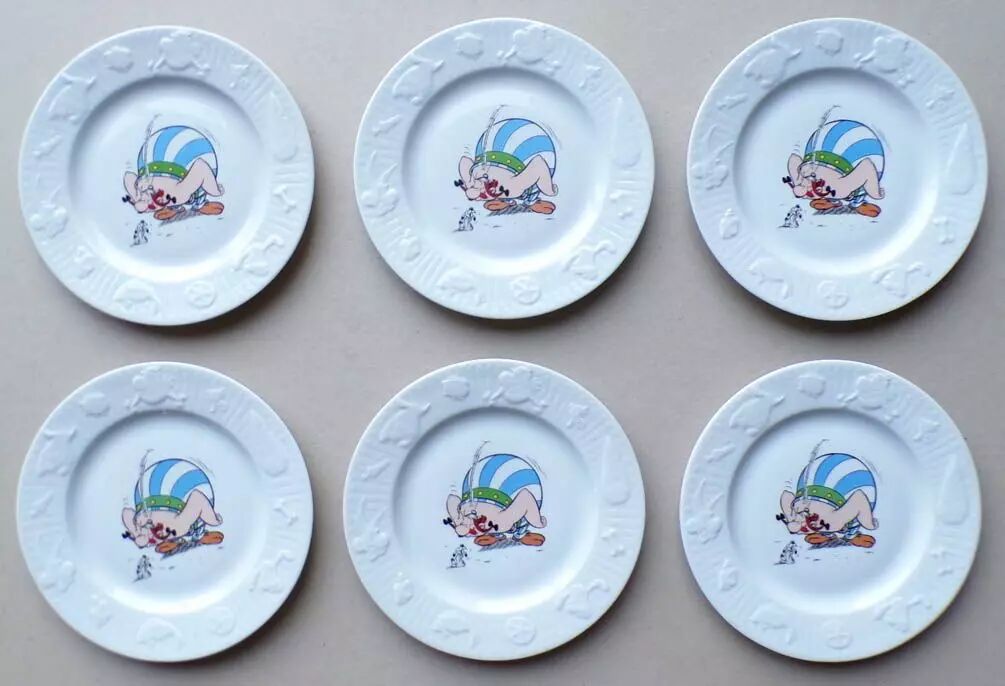 Asterix - 6 Assiettes Plates Porcelaine de Limoges - Obelix & Idefix Neuves