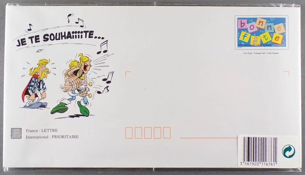 Accueil > Asterix > Asterix Produits Dérivés > Asterix - Carte Je Te Souhaite Bonne Fête avec Enveloppe Port Payé - Abraracourcix & Obélix