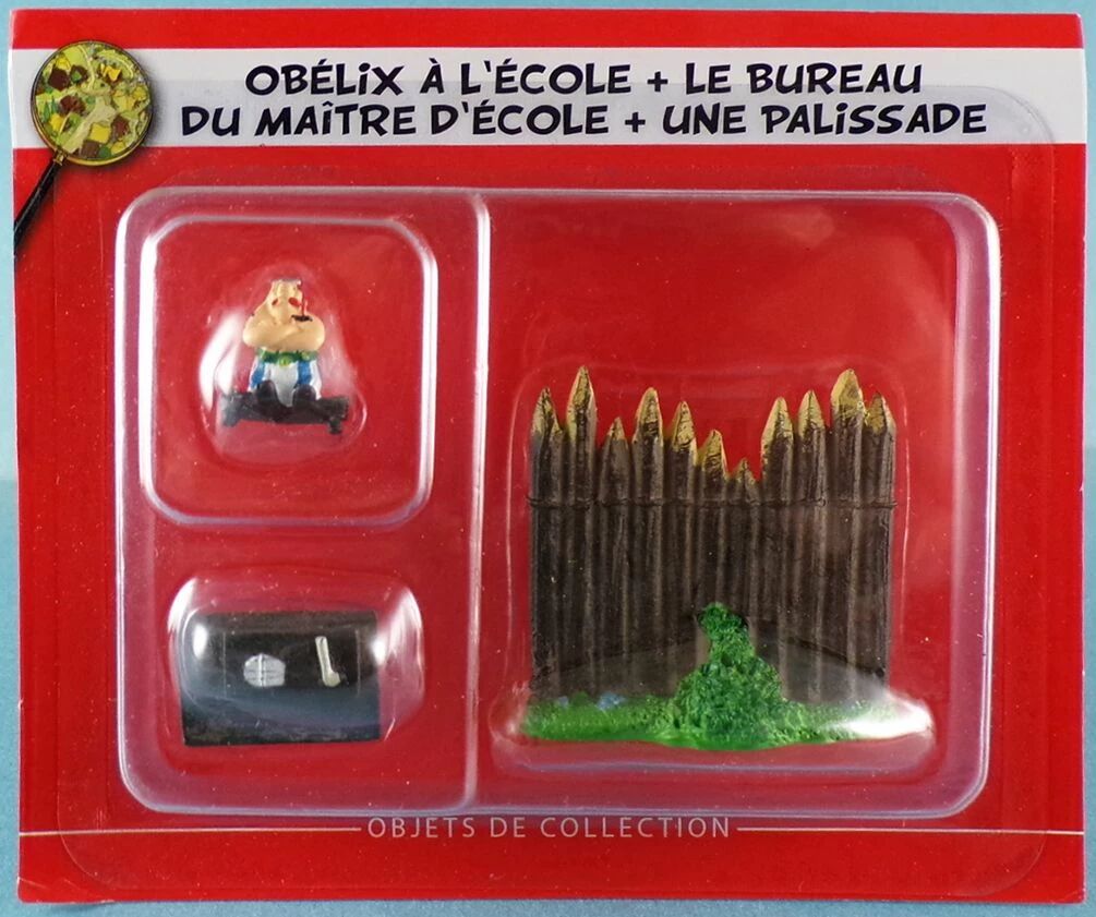 Asterix - Editions Hachette - Le Village - N°44 : Obélix à l'Ecole + le Bureau du Maitre d'Ecole + une Palissade Neuf Blister