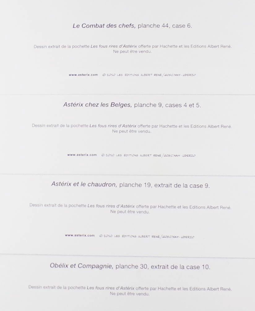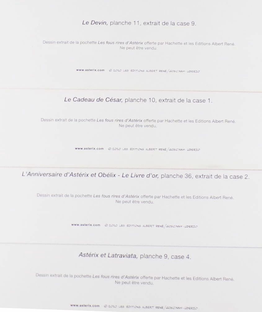 Condition : Parfait état sous pochette plastique d'origine. 8 planche couleurs de cases des bd avec indication référentielle au dos. Hors commerce, offert pour l'achat d'un album Astérix en 2010 - Voir photos