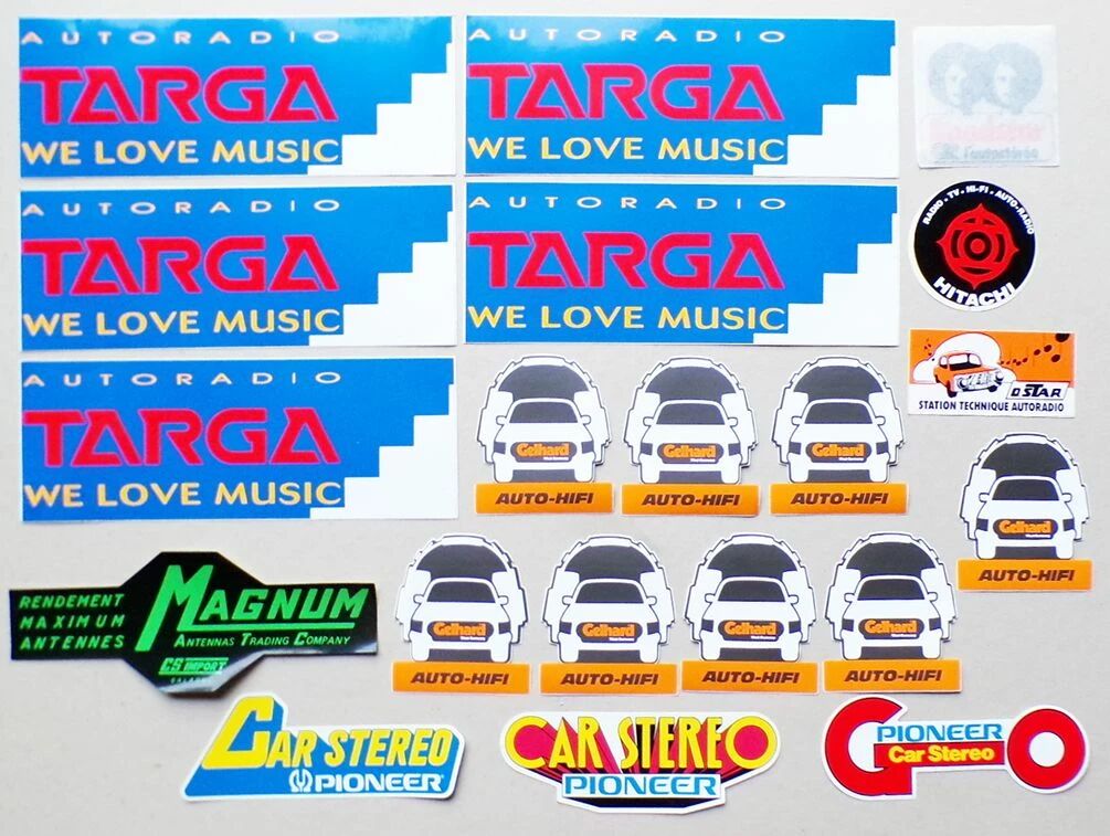 Autoradio Voiture Targa Hitachi Pioneer Roadstar - Lot de 19 Autocollants Vintage