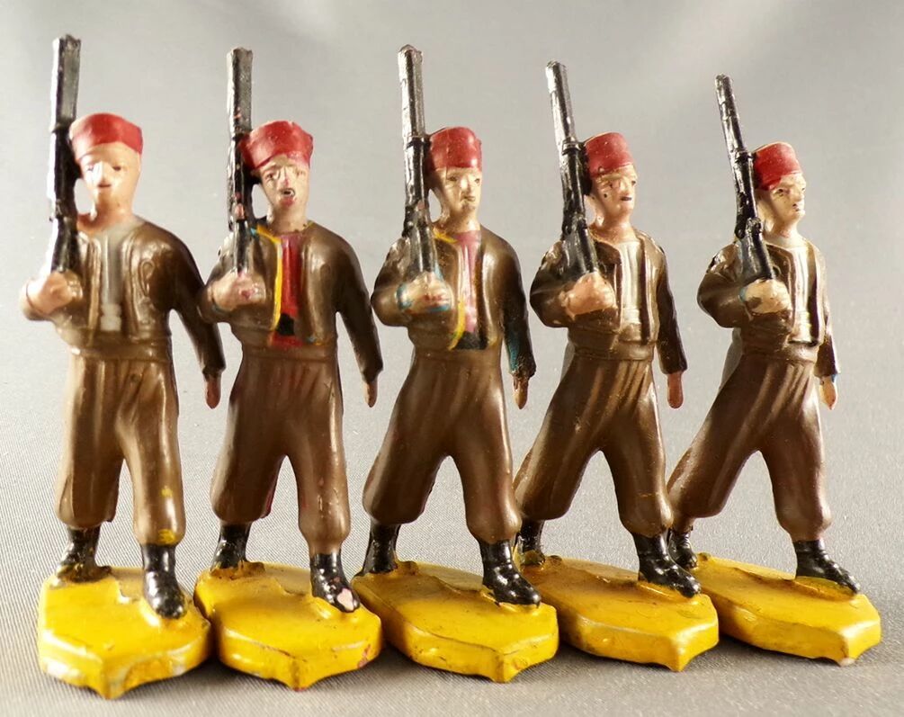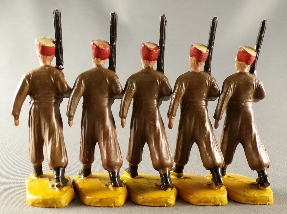 Accueil > Petits Soldats > Beffoid - Armée Coloniale Française - 5 Zouaves Tenue Marron Défilant Fusil Épaule
