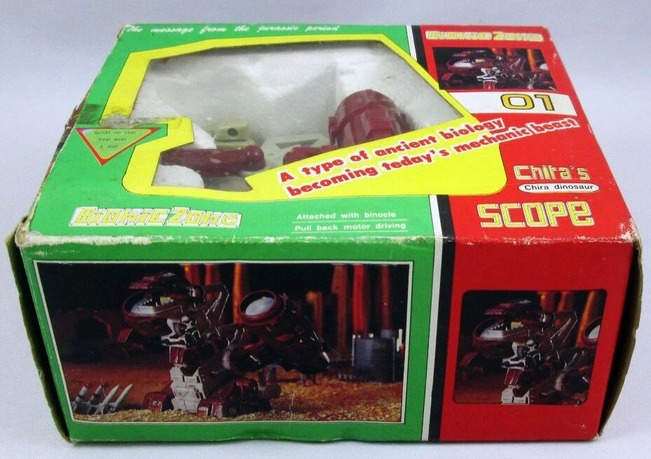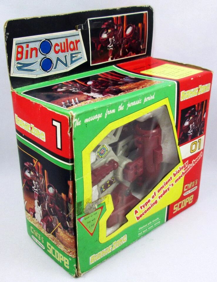 A bootleg figure inspired by Transformers and Zoids, with pullback motor. Transforms into binoculars.