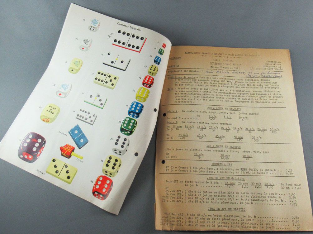 Catalogue & Tarif Emile Garnier 1963 + Tarif Domino Dés Jetons Poker d'As