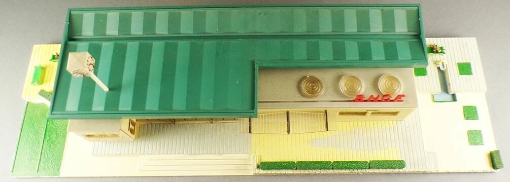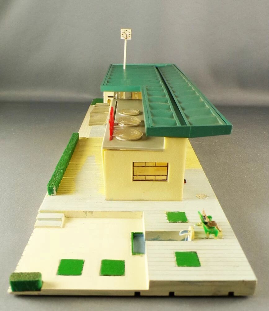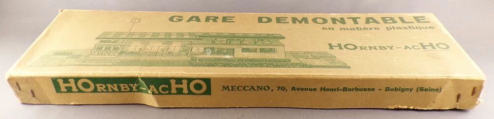 Hornby AcHo 690 Ho Removable plastic station. Length 44 cm width 13 cm. Good condition in original box, complete, painted base, the small elements are glued on the facades, small marks on the base, box a little worn, with assembly instructions inside the lid