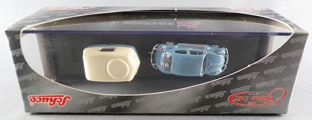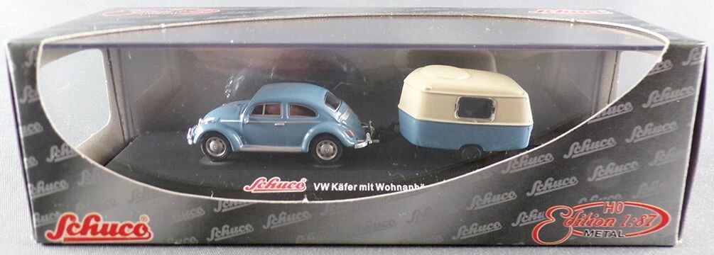 Schuco 21710 Ho 1:87 VW Blue Beetle Käfer with Caravan Mint in Box