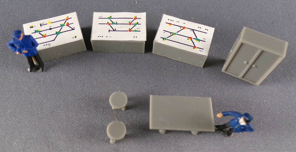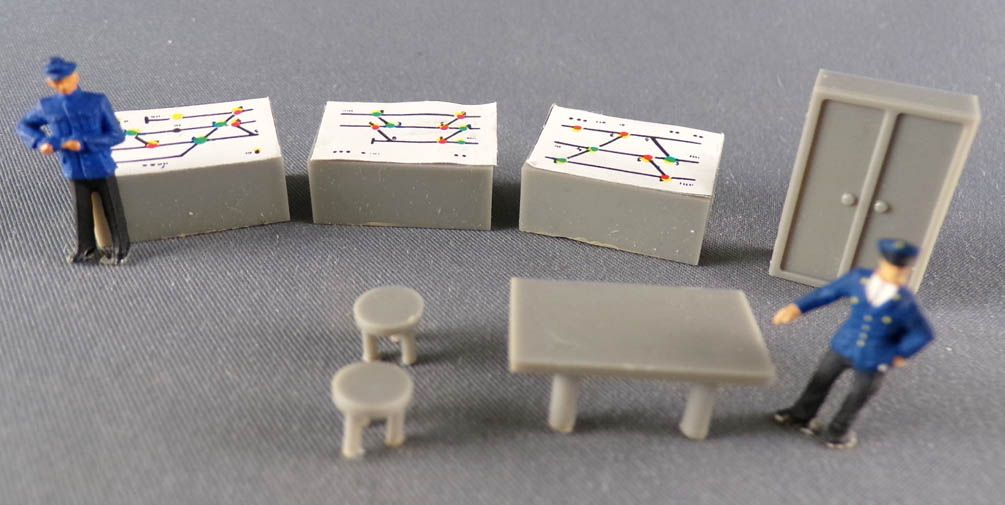 Faller 120118 Ho Interior fitting for signal box 1880- 1970. Veery good condition, seven pieces  and 2 figures