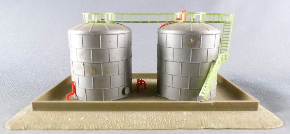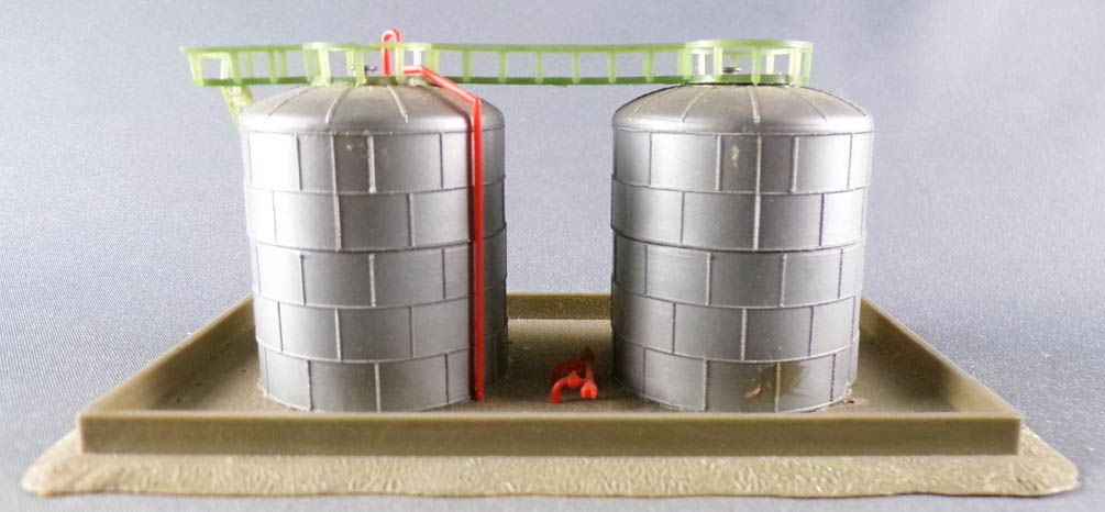 Faller 2132 Ech N Réservoirs surélevés citernes dépot pétrolier. 128 x 85 x haut 50 mm. Proprement assemblé, bon état, quelques manques de tuyauterie.