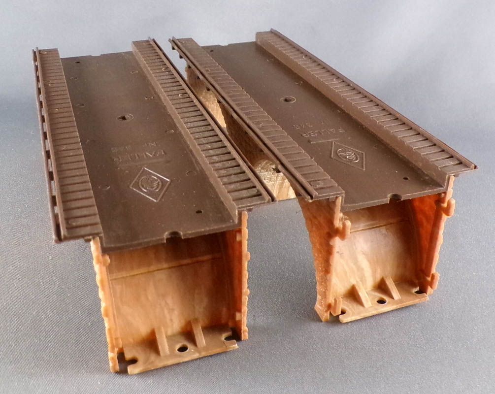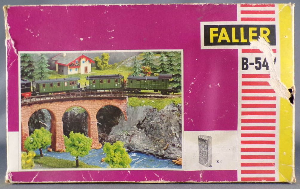 Faller Ho B-545 2 stone arch bridges with deck without guardrails, length 2 x 180 mm + B -547 2 pillars 45 x 23 x height 120 mm (2 sides cut into two parts, to be glued back together) + 1 pillar 45 x 20 x height 55 mm + 1 pillar 45 x 20 x height 48 mm + 1 pillar 45 x 20 x height 70 mm. Good overall condition, some traces of glue that are easy to remove.