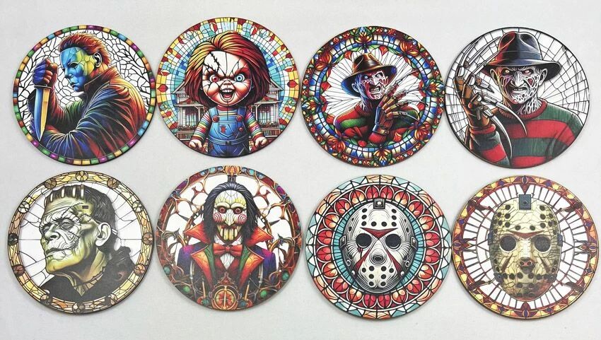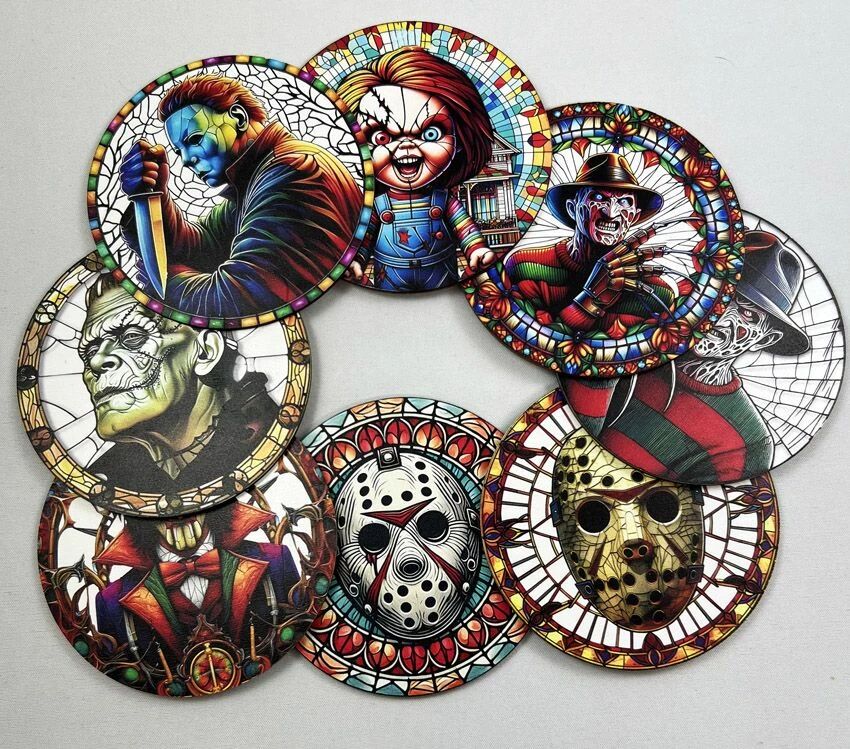 Accueil > Halloween - Michael Myers > Famous Movie Monsters - Lot de 8 Sous Bocks (Design Vitraux)