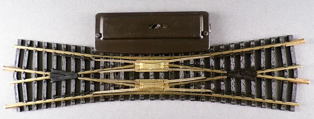 1725 Ho TJD Traversée de jonction double 15° manuelle. Rails laiton. Longueur 220 mm. Neuve en boite, jamais utilisée, complète avec éclisses et notice