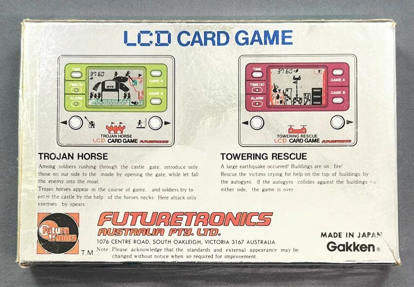 Accueil > Jeux Electroniques & Vidéo Vintage > Gakken > Gakken / Futuretronics - Handheld Game - Trojan Horse (Cheval de Troie) en boite