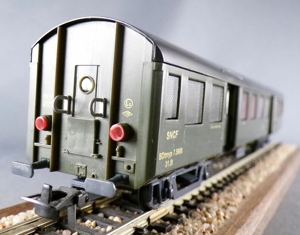 Hachette sur base De Massini Ho Sncf 1 Voiture de banlieue modernisée dite "Romilly" Mixte 2ème Classe Fourgon type BDtmyp immat 7.5668 Livrée vert toit noir. Epoque III
