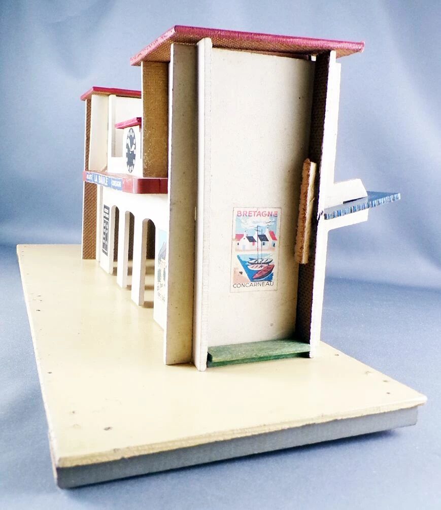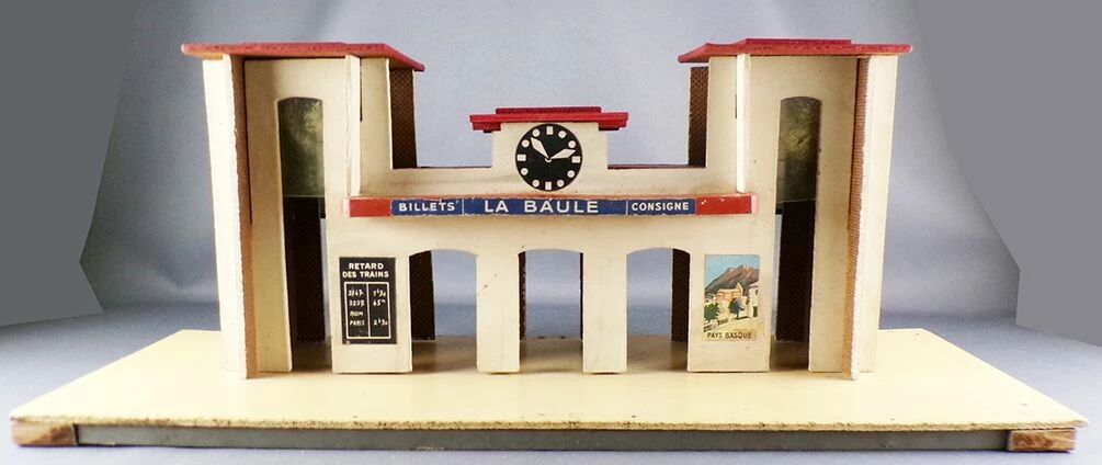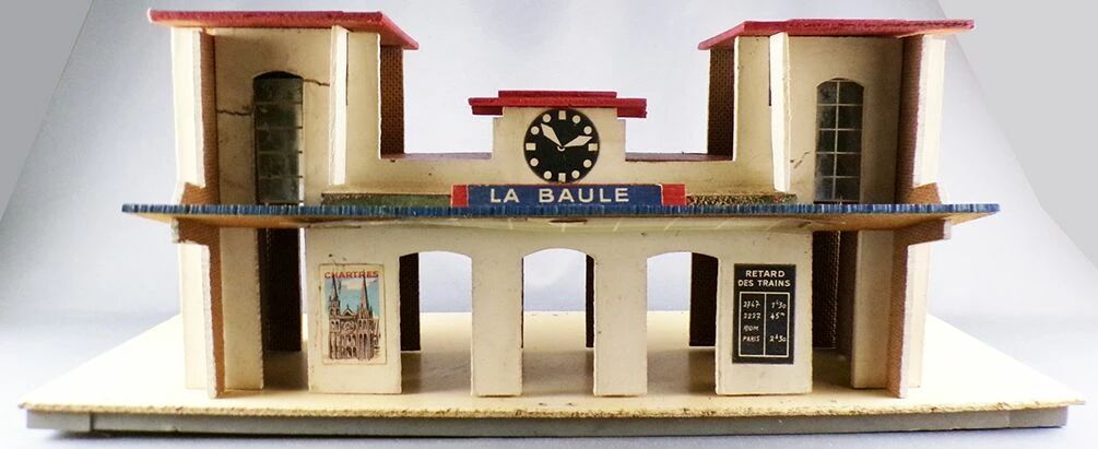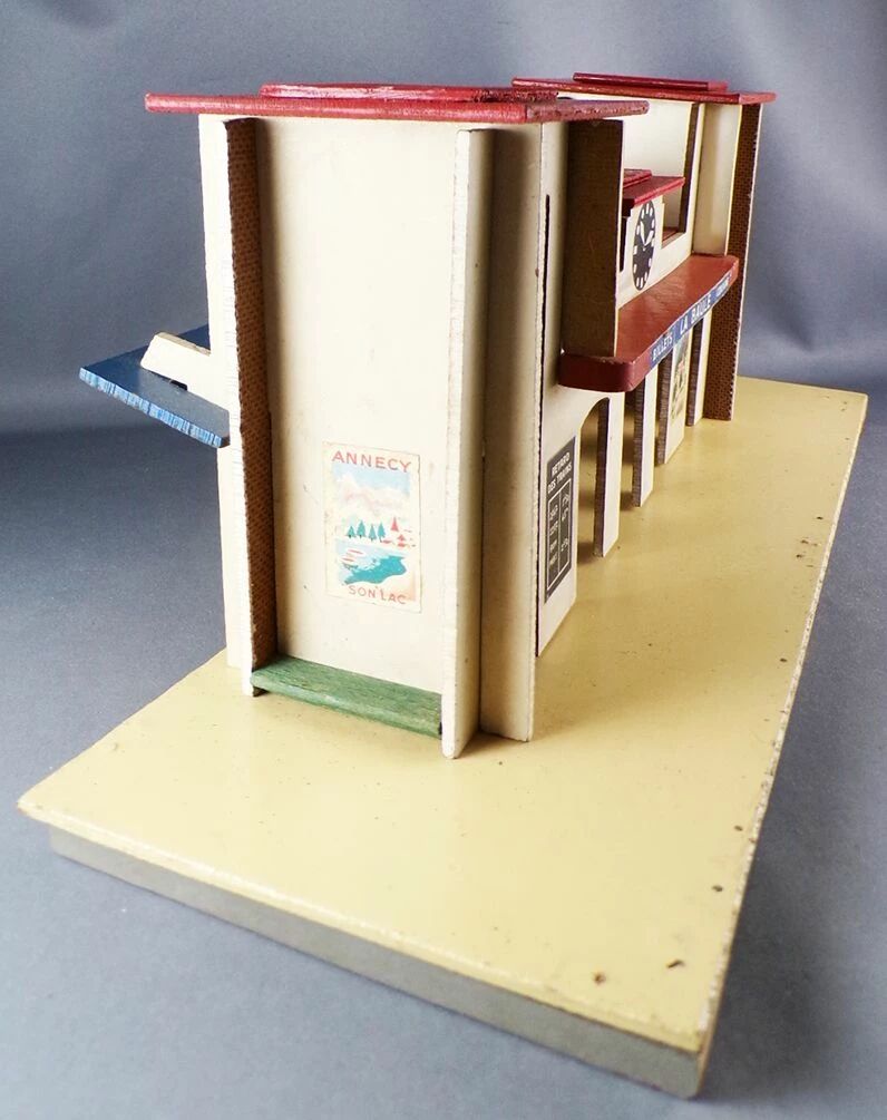 Hornby Ech O No. 18 La Baule Station & detachable platform made of wooden (isorel). 42.4 x 14.7 x Height 15 cm. Good overall condition, two broken walls reinforced, a small central roof added (not essential for assembly), platform pylons glued to the base and roof, without box, see photos