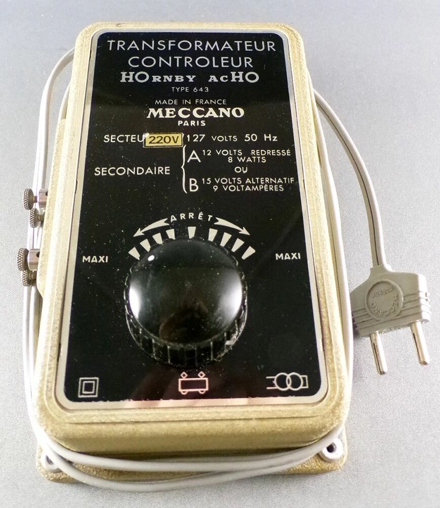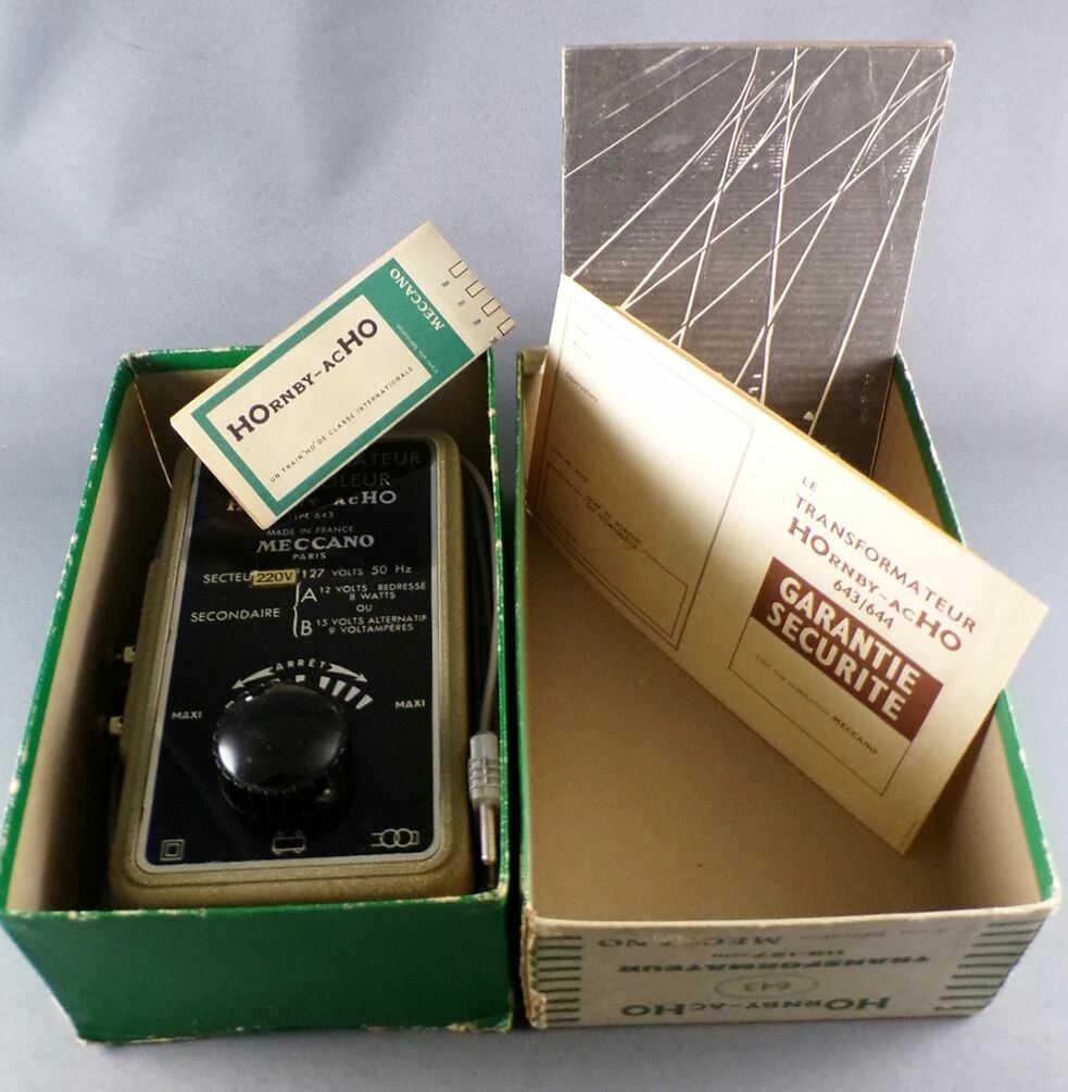 Hornby AcHo 643/644 Ho Transformer 220V 50Hz to 12V 8W DC for locomotives & 15V 9VA AC for accessories. Very good condition with original box, tested, works