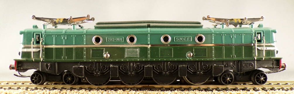 Jep 6009 L Ho Sncf Loco Electrique 2D2 9101 livrée bi-colore 2 tons de vert. 3 Rails CC analogique. Carrosserie en plastique, chassis en zamac moulé sous pression - moteur AP5 20V 5 pôles, d'une grande souplesse et d'une bonne puissance. Transmission par engrenages droits. Chassis à 5 sablières.