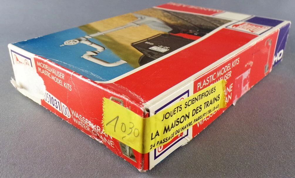 Jouef 1031 Ho Sncf Manche à eau. Très bel état. Socle 71 x 20 x haut 60 mm, pivotante. Neuve en boite, pièces sur grappe, instructions d'assemblage imprimées au dos du couvercle de la boite.