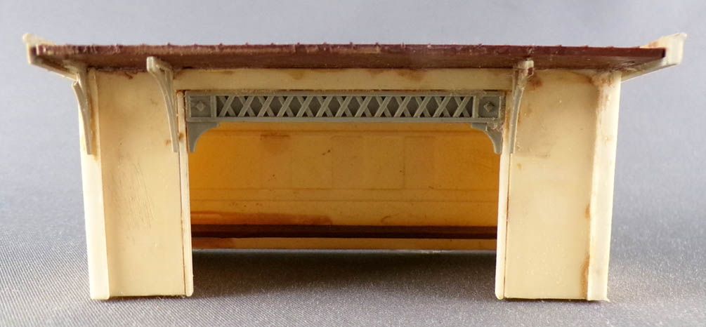 Jouef 1038 Ho Sncf Abri de Quai. Assemblé, quelques traces de colle, manque la rive de façade. 81 x 30 x haut 42 mm. Sans boite.