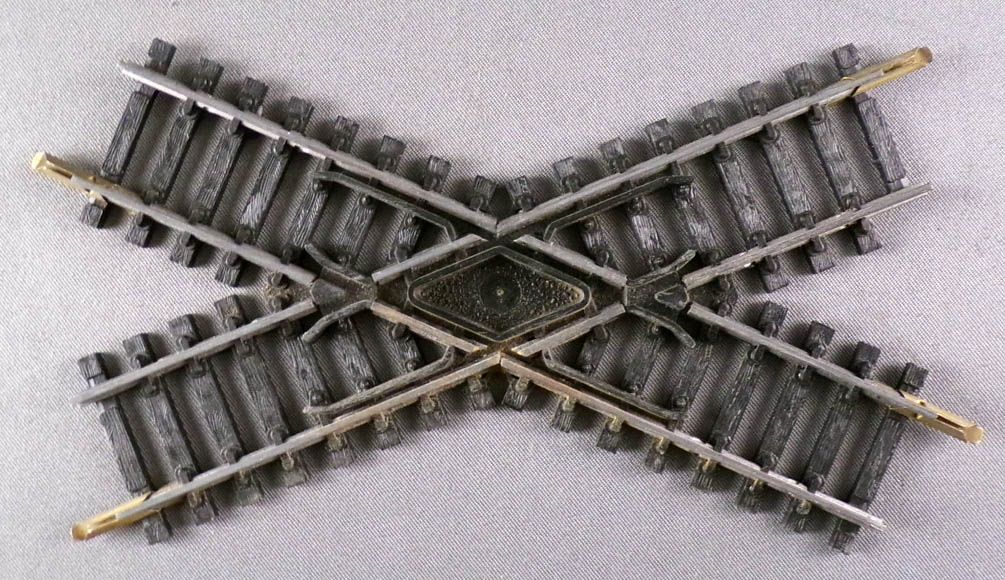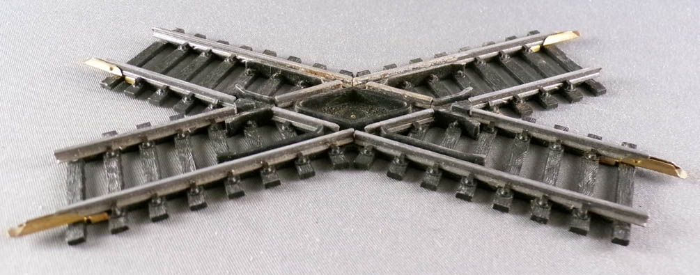 Jouef 449 Ho Croisement de coupure 45° longueur 1321 mm. Très bon état, sans boite, complet avec éclisses.