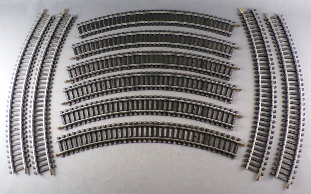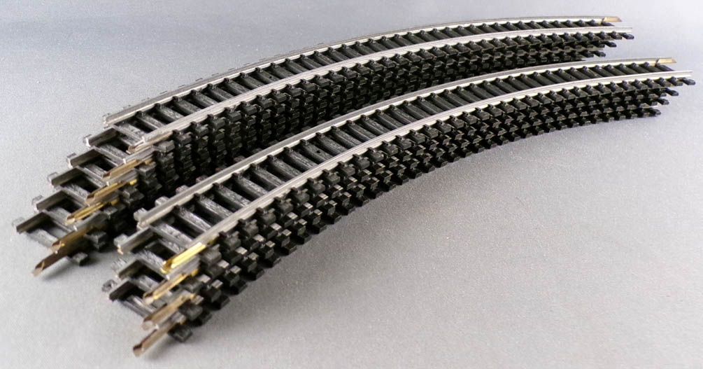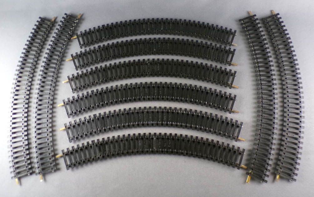 Jouef 470 Ho 10 Rails courbes acier R 325 R=12 3/4 Très bon état, complets avec éclisses