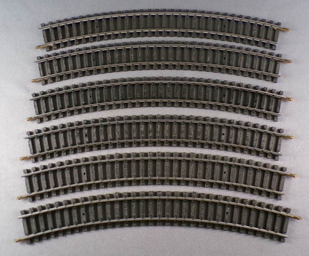 Jouef 470 Ho 6 Rails courbes acier R 325 R=12 3/4 . Très bon état, complets avec éclisses