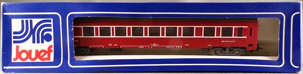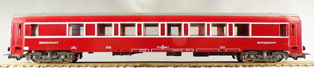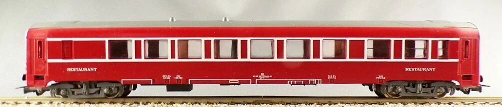 Jouef 5490 Ho Sncf Restaurant Type Dev Coach Red Livery N° 518788-80002-8. Length 277 mm, metal wheels, universal couplers. Very good condition, complete, buffers ok, a very light scratch on the roof, with blue box in very good condition, complete with all flaps.