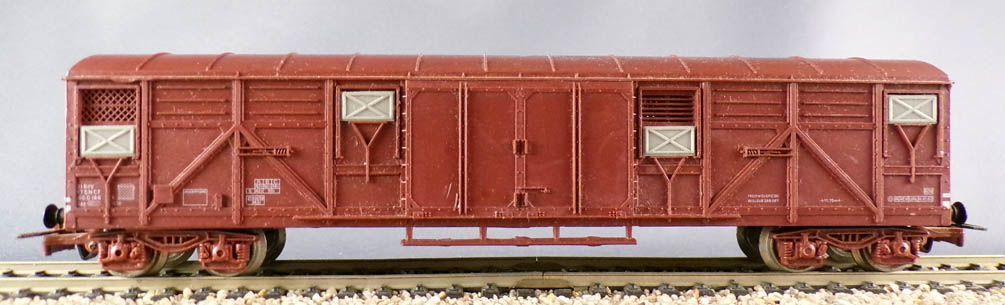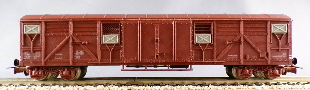 Jouef 6531 Ho Sncf Gas type covered wagon with bogies, brown livery, registration number 11 17 90 0 144. Length 190 mm, metallic wheels, universal couplers. Good condition, complete, buffer and running boards ok, with original showcase box with red base in good condition, light marks