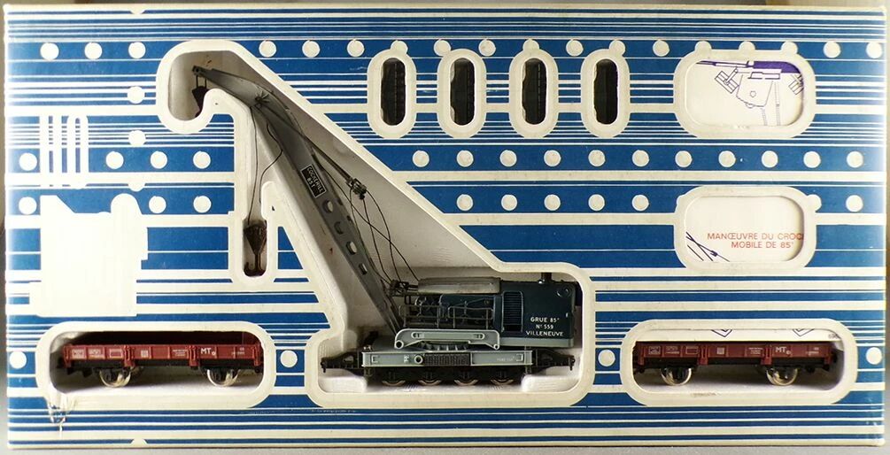 Jouef 6963 Ho Sncf 85 Tons Cockerill Crane boxed set. Complete set, set length 390 mm. Complete with all accessories, mint in original box and instruction sheet, unused