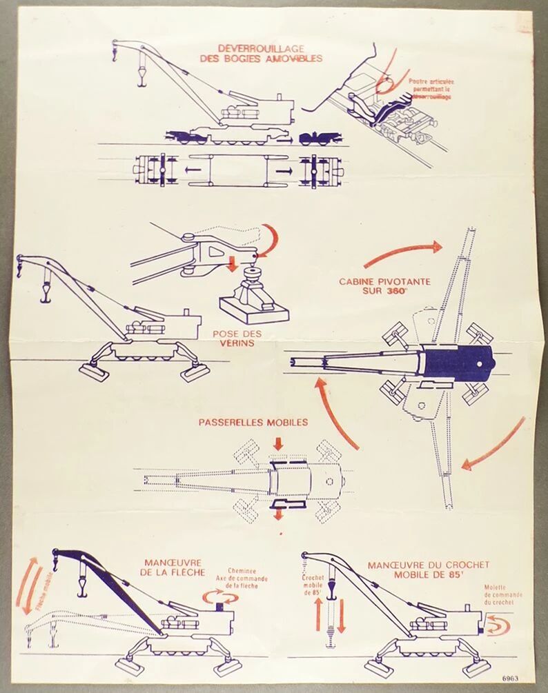 Jouef 6963 Ho Sncf Coffret Grue Cockrill 85 Tonnes. Complet, grue N° 599 Dépot de Villeneuve, cabine pivotante avec flèche réglable & crochet mobile et fonctionnel + 2 bogies + 4 vérins + wagon plat porte flèche + wagon plat porte vérins. Longueur 390 mm. Neuf en boite d'origine, avec notice en bel état, jamais utilisée.