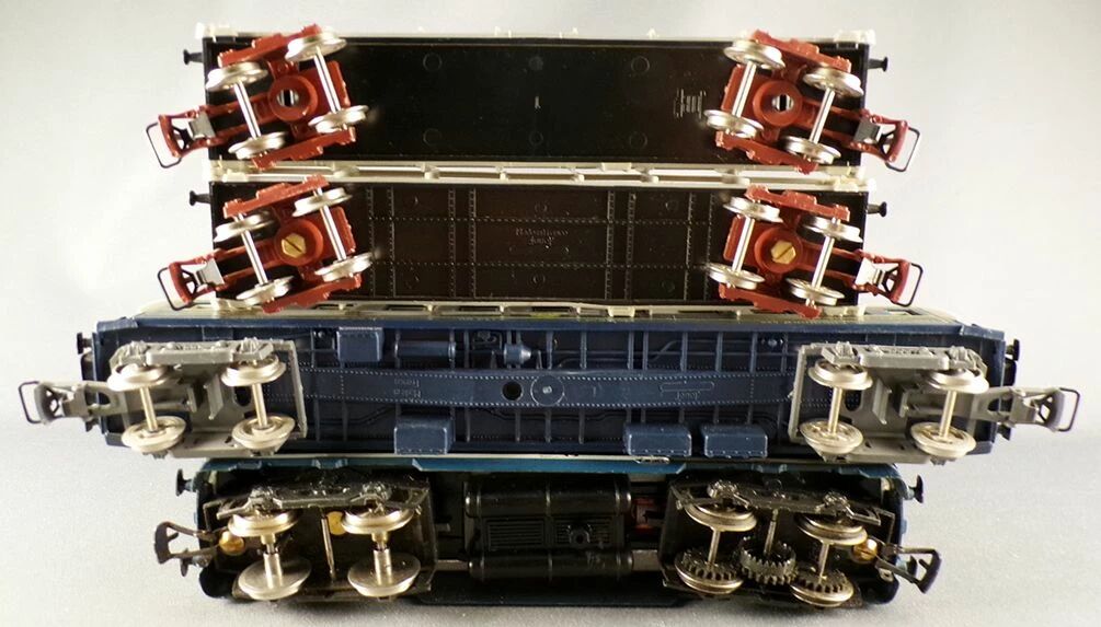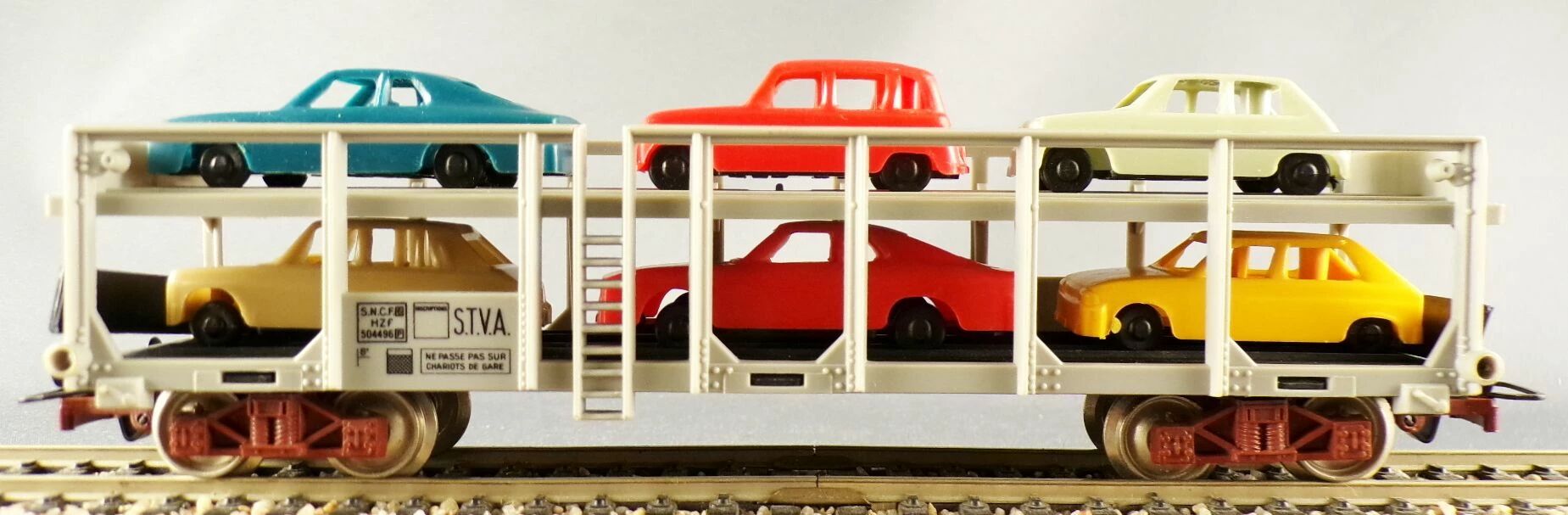 - 2 HZf 504496 car transport wagons, light grey livery, length 170 mm, Diamond bogies, international couplings moulded with the bogie, metal wheels