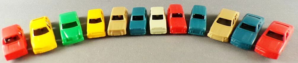 - 12 Voitures troisième série soit 1 Citroën CX jaune - 1 Volkswagen Golf rouge - 1 Mercédès 240 D verte - 1 Peugeot 104 jaune - 1 Simca 1100 beige - 2 Renault 5 une bleue une beige clair - 2 Renault 4 une bleue une rouge - 2 Opel manta une bleue une rouge - 1 Renault 30 beige