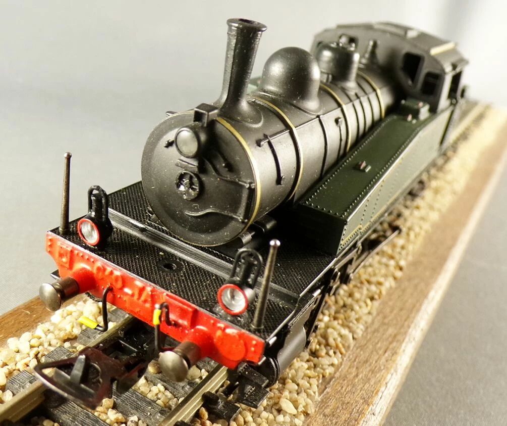 Jouef 8292 Ho Sncf Loco Vapeur 040 TA Cabine fermée livrée vert & noir, sans éclairage, marquage effacé, traverse avant repeinte, moteur 5 pôles, entraînement moteur par courroie, essieux brunis