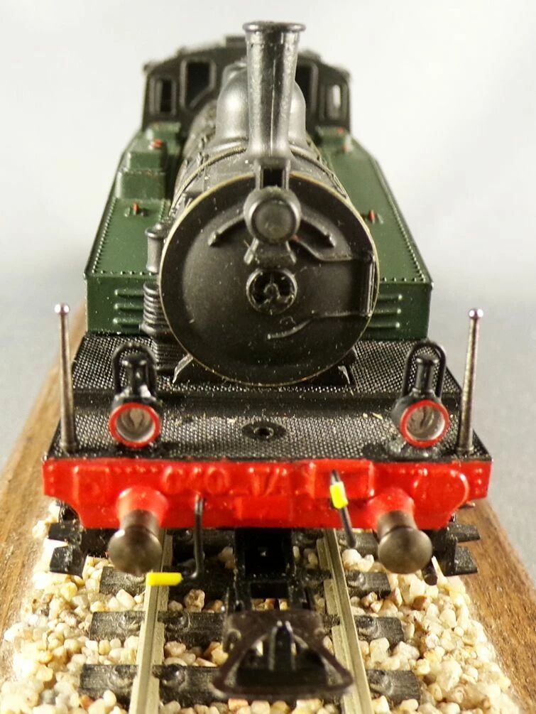 attelage boîtier NEM. Longueur 127 mm. Très bon état, tampons et marchepieds ok, pièces de détaillage rapportées sur les traverses avant et arrière. Testée, fonctionne, n'a pas roulé depuis longtemps, une petite lubrification et un petit rodage lui feront du bien, sans boite.