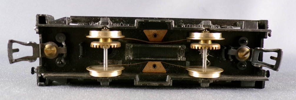 Jouef 8401 Ho Sncf Loco Tracteur Diesel Y 51130 châssis noir long, moteur 3 poles type M60 monté verticalement, entraînement par engrenages droits en laiton, livrée vert bandes jaunes. Longueur 117 mm. Bel état, quelques traces, tampons ok sauf l'avant gauche, des traces de colle sur la traverse avant, angle arrière gauche du toit de la cabine cassé sur 2mm, sans boite, testée, fonctionne, pas d'éclairage.