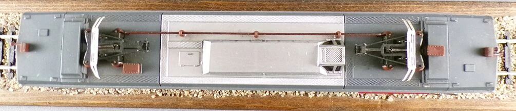 Jouef 8436 Ho Sncf Electric locomotive CC 6505 Grand Confort in stainless steel & red with orange lining. 12-volt motor, 5 poles, driven by spur gears, 1 powered bogie, 2 wheels with tires, international couplings screwed to the bogies, reported alarms and circuit breakers. Length 226 mm. Very good condition, without box, buffers and pantographs are okay, one alarm's horn broken, tested, works well, no lighting.
