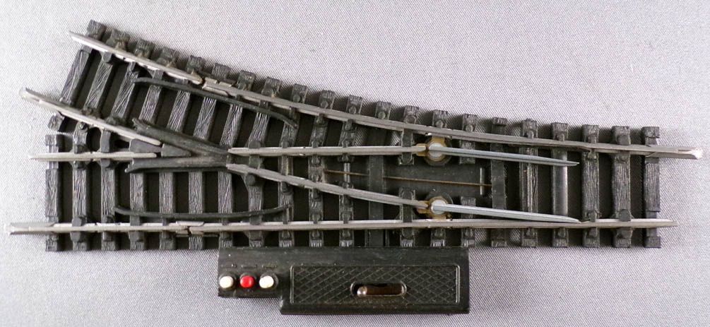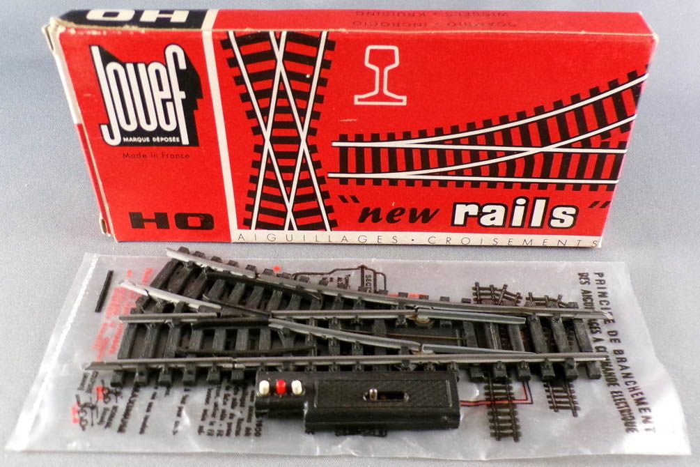 Jouef 84E Ho Electric control point to the right R385 Steel tracks, length 153 mm. Very good condition with original box, complete with fishplate on both ends.