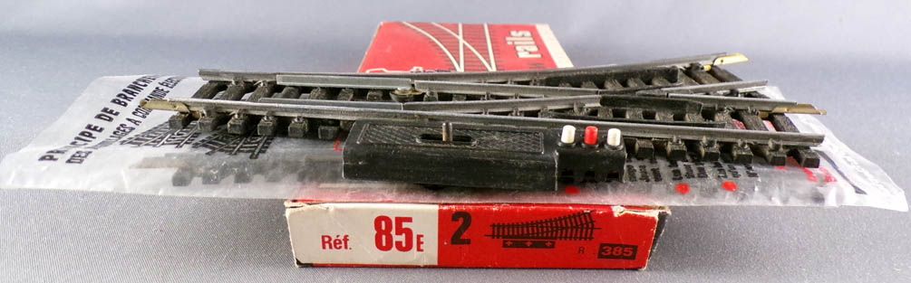 Jouef 85E Ho 2 Electric control points to the left R 385 steel tracks, length 153 mm. Very good condition, complete with fishplate on both ends, comes with red box.