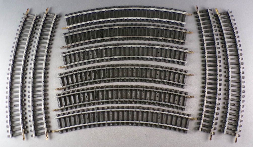 Jouef 870 Ho 10 Rails courbes en acier R = 385 mm 15°. Très bon état, complets avec éclisses