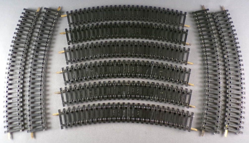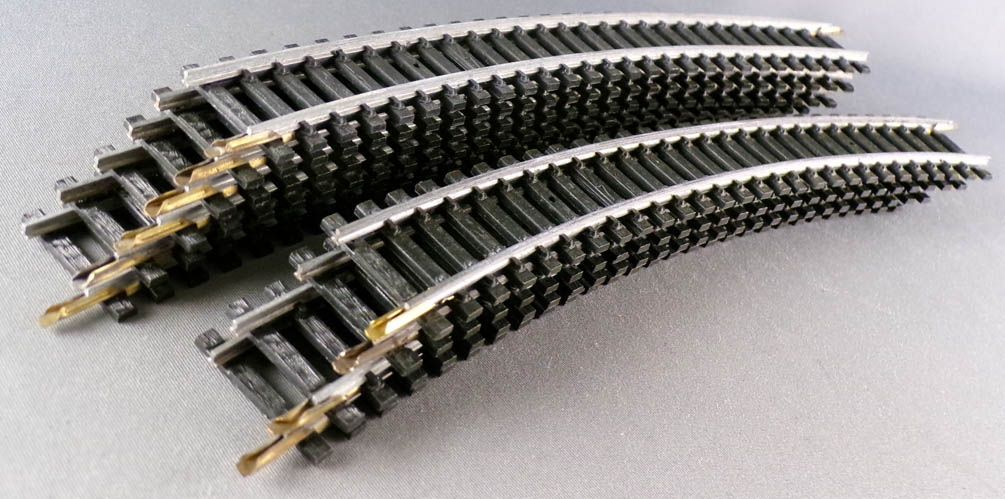 Jouef 870 Ho 10 steel curved rails R = 385mm 15°. Very good condition, complete with fishplate on both ends