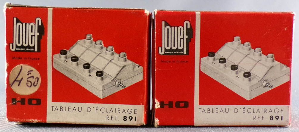 Jouef 891 Ho 2 Tableaux d'éclairage première version couleur noire, boitier de commande. Bon état en boite. Permet de commander 4 circuits électriques différents dont rails dételeurs, voie de garage, lampadaire, éclairage bâtiments.