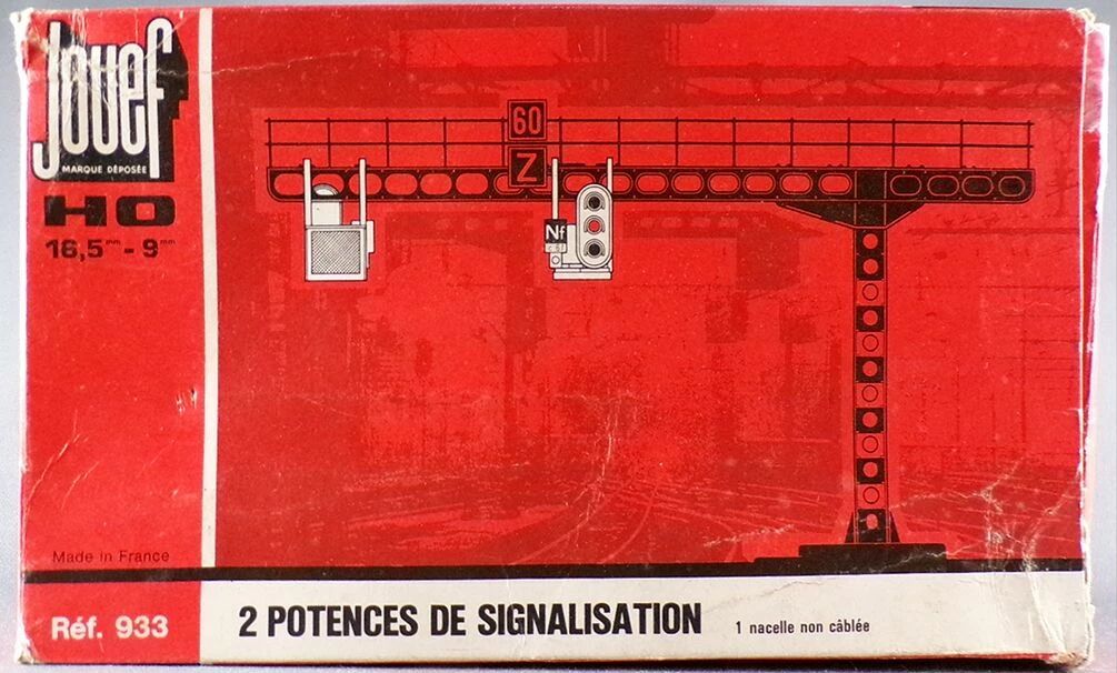 Accueil > Modélisme Ferroviaire > Modélisme Ferroviaire - Echelle Ho > Modélisme Ferroviaire Ho - Rails, Signalisations et Commandes > Jouef 933 Ho 2 Potences de Signalisation 1 Nacelle non Câblée + Panneaux Neuves Boite
