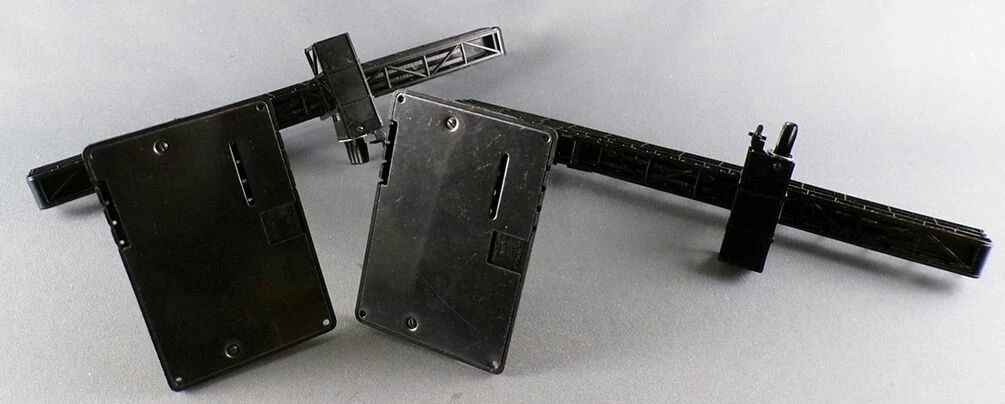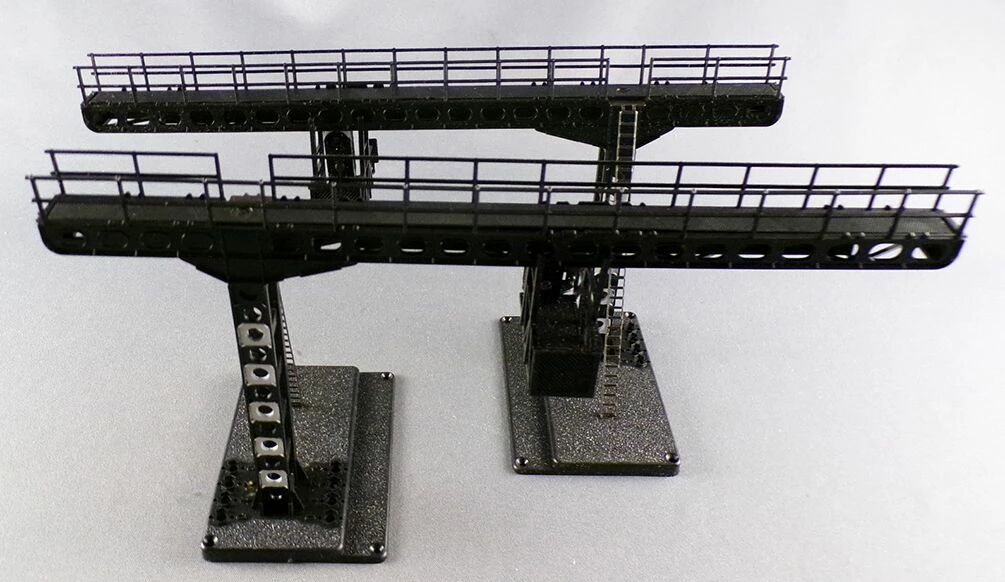 Jouef 933 Ho 2 x Signalling gantries with 3 aspect housing not wired + signs. Mint in box, unused, some signs are not still on the sprue.