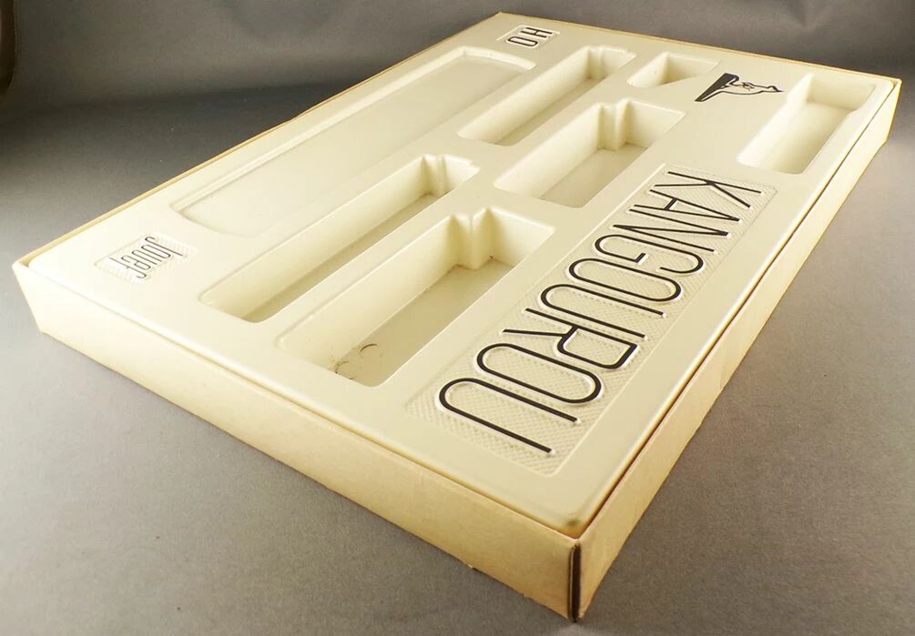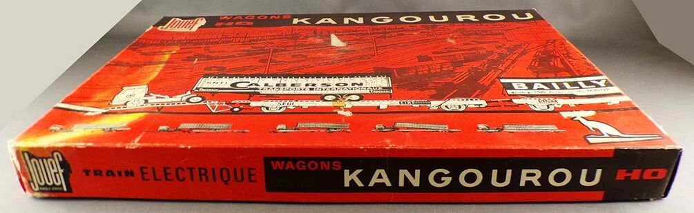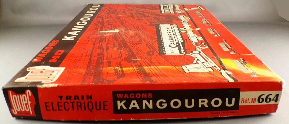 Jouef M664 Ho Sncf Coffret Kangourou boite vide. Bon état, petites traces sur le couvercle, un angle scotché, encart intérieur en plastique thermoformé en bon état, petit trou dans le compartiment du tracteur routier Lorraine, fond de boite en bon état